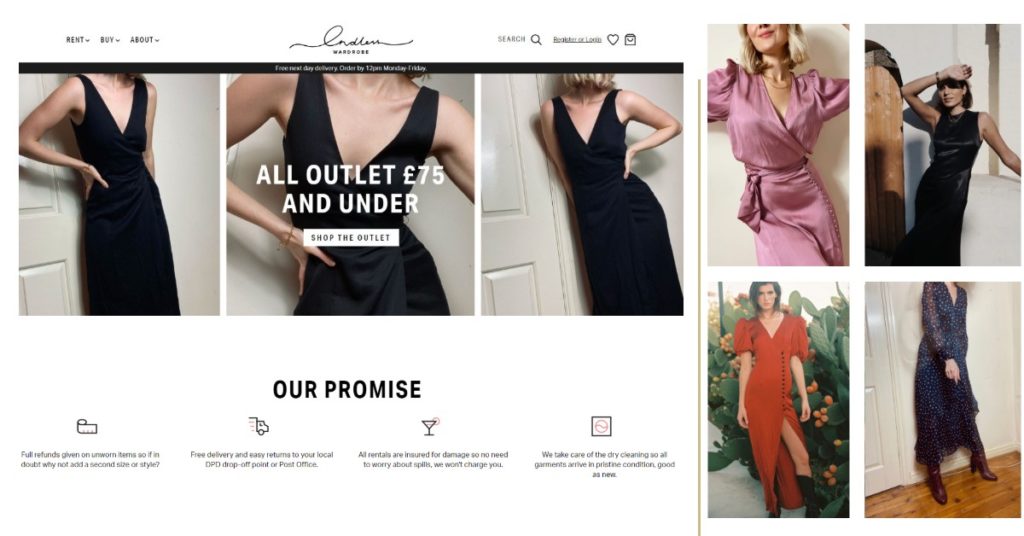 Highlights: The website has a big emphasis on sustainability. I particularly love their sustainability calculator where you can work out the environmental saving of renting your clothes, instead of buying new and wearing once. On each item up for rent they show the environmental savings of your rental over a purchase.