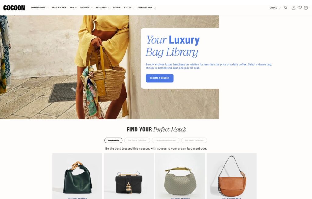 Think of Cocoon like your rotating luxury wardrobe for designer bags. It’s subscription-based, with flexible membership tiers depending on how often you want to switch things up. Ideal if you want to always have a killer accessory on hand.