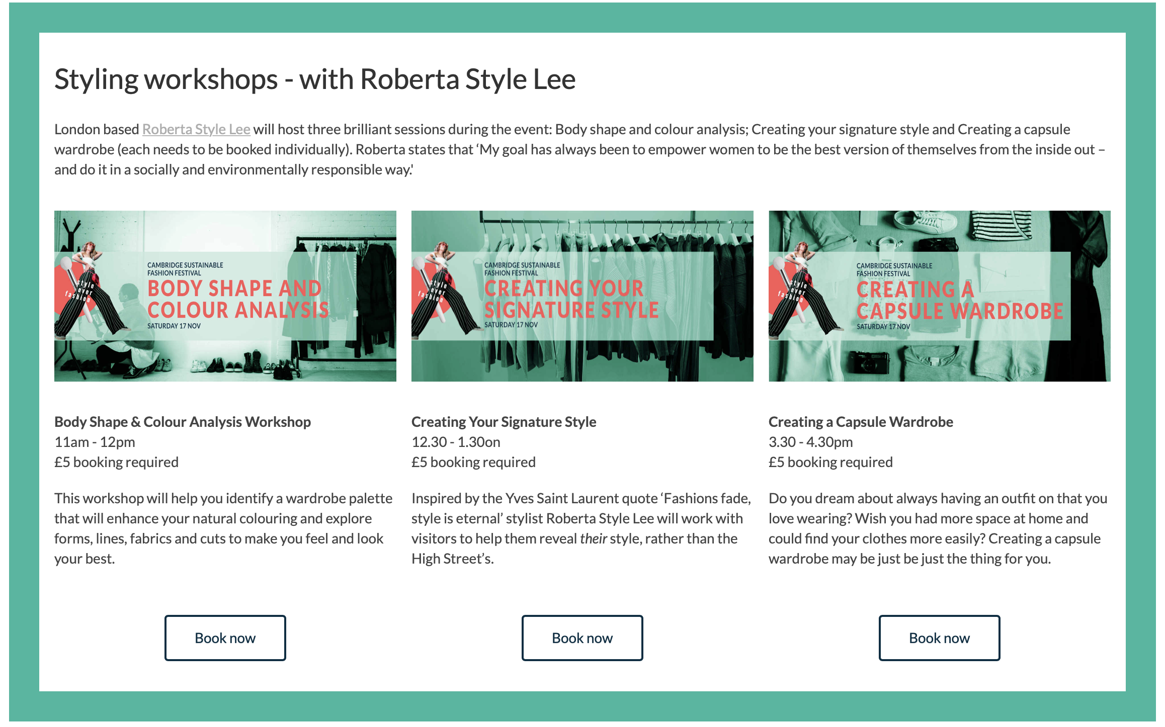 Discover your inner fashion activist by popping over to Cambridge to the Sustainable Fashion Festival on November 17th, where I will be taking over the ‘Style Zone’ and running workshops: