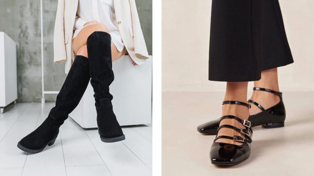 If you’re conscious of your legs appearing even longer, avoid pointed shoes. Opt for almond, round – or even peep toe. An ankle strap also helps break the vertical line of your legs. Tall girls can of course wear heels – however, when it comes to wearing flats, you have your pick of the flat footwear styles and options.