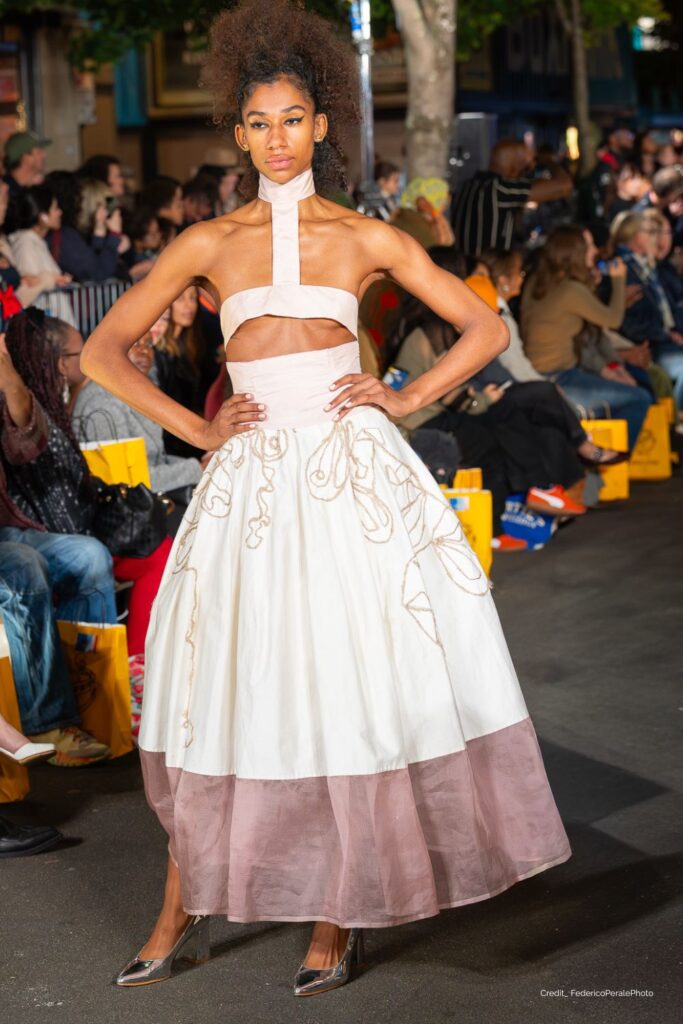 Sustainable Fashion at LFW took on a very different meaning this season, thanks to Tammam’s SS26 collection, where couture-inspired looks walked not in a hall or gallery but down Camden High Street. This bold choice transformed one of London’s most eclectic streets into a runway for all. It was a showcase of sustainable fashion innovation and collaboration, and it made history with the first garments ever shown in UK-grown cotton.