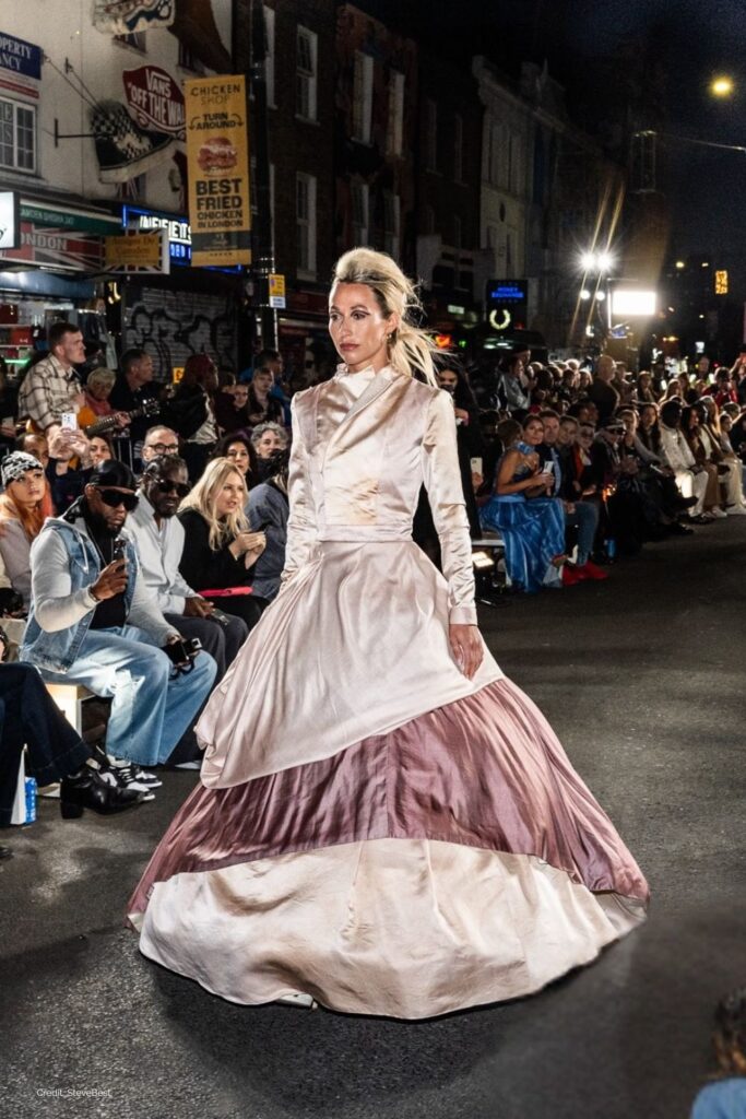 The setting was iconic. Camden High Street, with its bustle of markets, commuters, and Londoners, became a stage where couture met community. Passers-by became part of the audience, creating an atmosphere that blurred the lines between high fashion and everyday life.